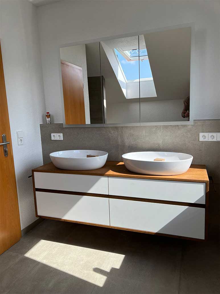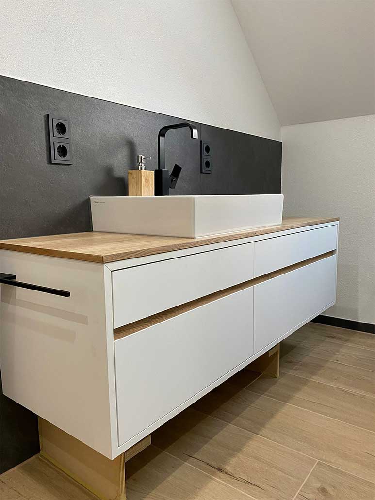 Durchdachte Planung, saubere Ausführung und hochwertige Materialien – verwandeln Sie Ihr Bad in eine stilvolle Wohlfühloase!